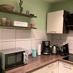 A kitchen features tea and coffee making equipment, along with a microwave, a refrigerator, and kitchenware for self-catering purposes. Ferienwohnungen Familie Schmidt is merely 100 km from Leipzig/Halle airport.